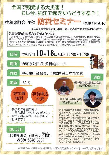 防災セミナー(10月18日)全国で頻発する大災害! もし今、狛江で起きたらどうする?!