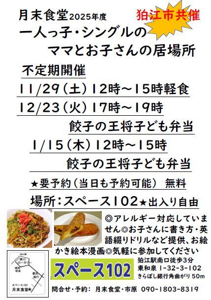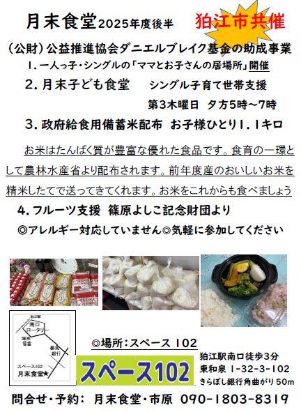 月末食堂2025年度後半事業(狛江市共催・(公財)公益推進協会ダニエルブレイク基金の助成事業)