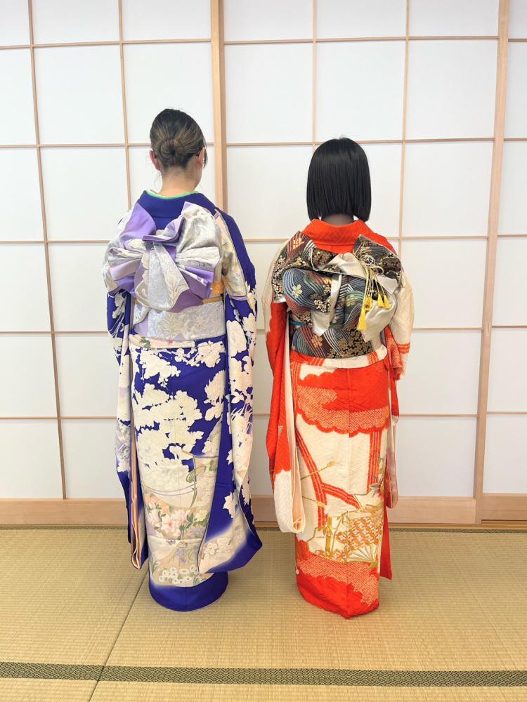 今は冬休みなので、会員のお嬢さんたちにも参加してもらいました。二人とも振袖がよく似合って、とても可愛いです。高校生や大学生のお嬢さんたちは成人式前なので、どんな振袖が似合うか、本番の成人式の参考にして頂きたいと思います。 -