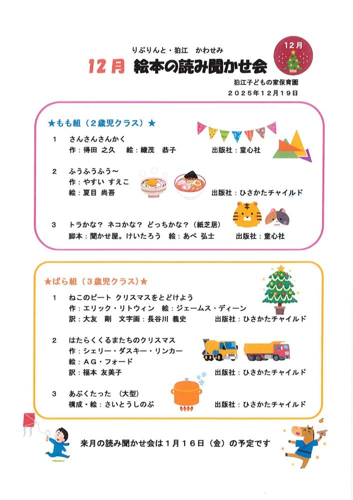 コラボの仲よしさんは紙芝居「一寸法師」と絵本読み聞かせ