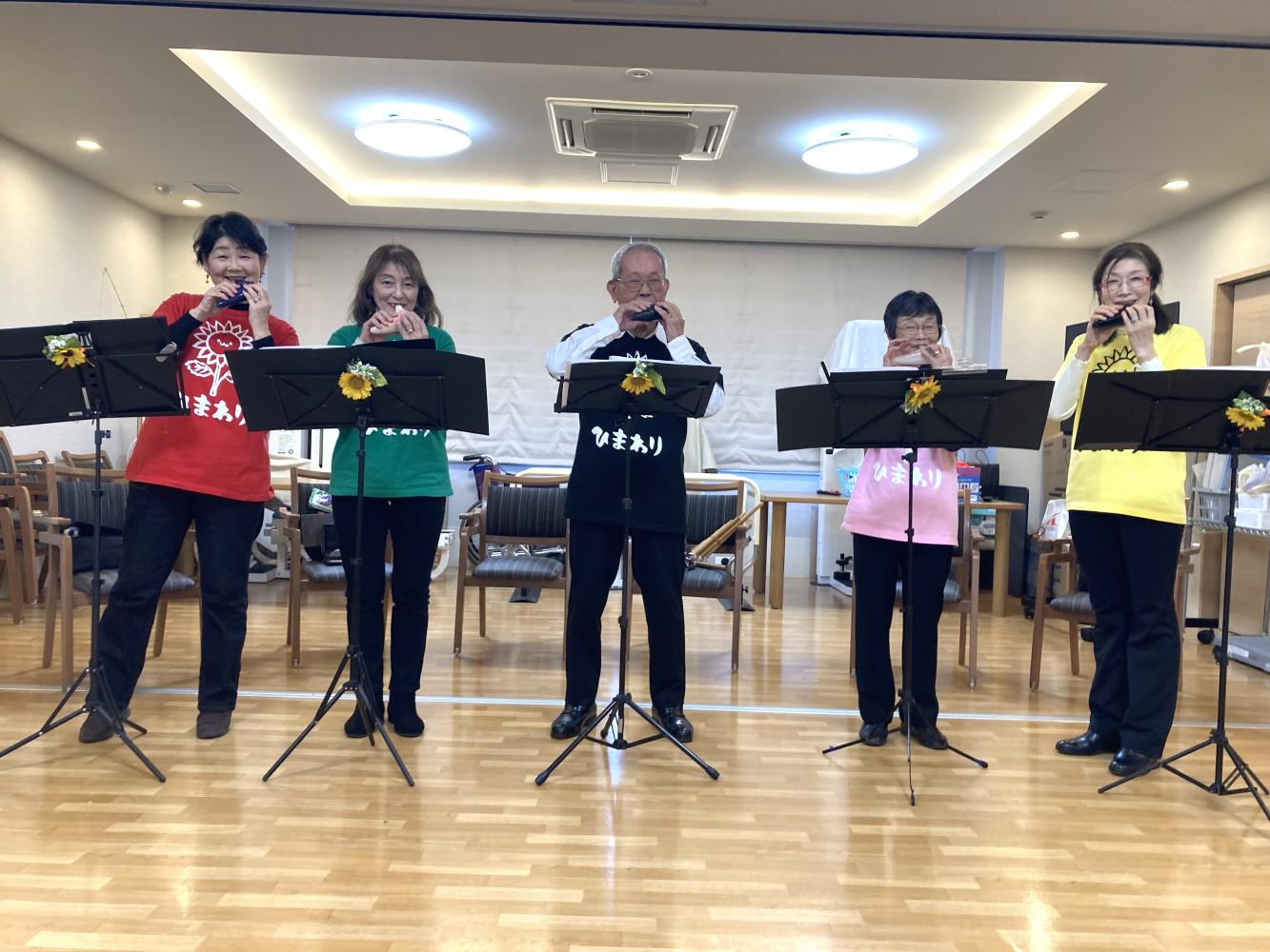今回も、初めてここのボランティアに参加したメンバーがいます。コラボしているアンデスの仲間は、三種類の楽器を使って五木ひろしの「故郷」を演奏。私は二つのオカリナを持ち替えて「シルクロード」の演奏にチャレンジしました。