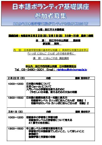 日本語ボランティア基礎講座(2月22日(日)/3月1日)参加者募集