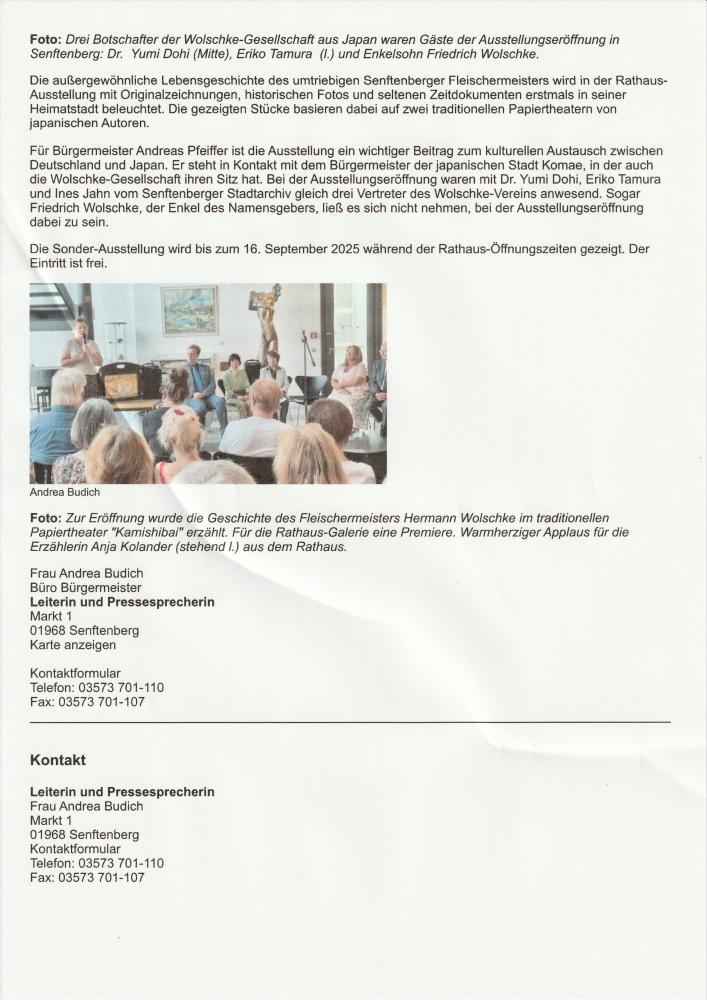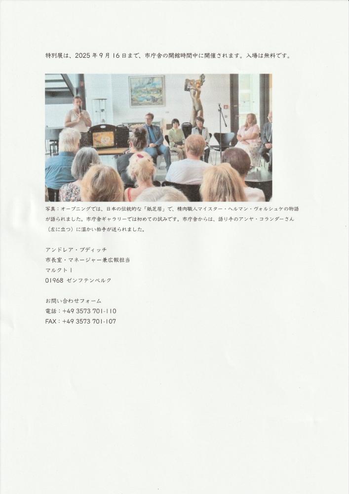 9月2日から16日の間、ゼンフテンベルグ市庁舎ギャラリーにおいて「ヘルマン展」が開催され市報に掲載されました。